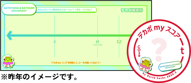 Earth hacksブースでは、デカビートのMVで登場したグッズの展示や、あなたの年間CO2排出量がわかる「デカボmyスコア」の測定が体験できます!さらに、測定いただいた方にはデカビートロゴステッカーをプレゼント!